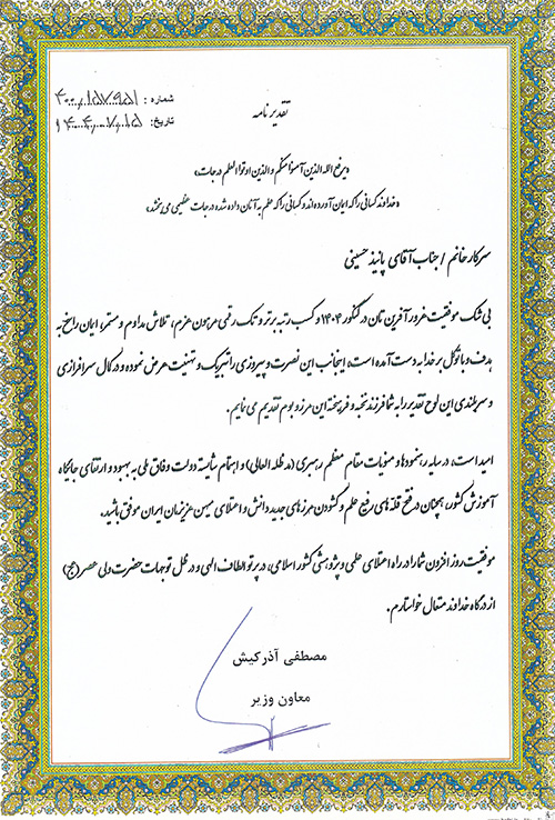 در این آیین، که با حضور مقامات ارشد وزارت آموزش و پرورش، مدیران مناطق، دبیران و خانواده‌های برگزیدگان برگزار شد، از تلاش، پشتکار و موفقیت چشمگیر این دانش‌آموز افتخارآفرین تجلیل گردید.